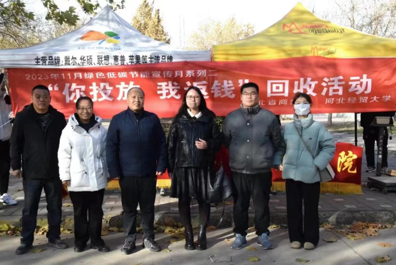 联合河北省商务厅在新高度餐厅前广场举办“你投放 我返钱”废品回收活动。