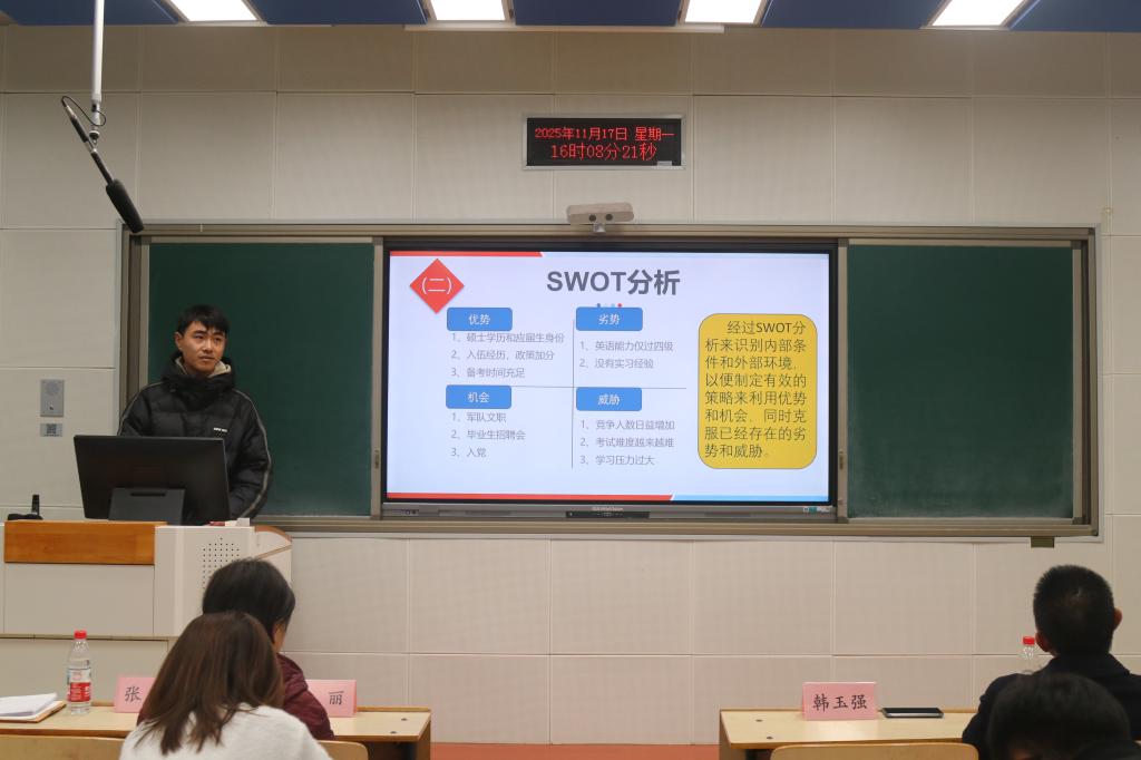 为引导学生科学规划职业发展,提升就业竞争力。11月17日下午,*肉漫屋 在B104举办第二届大学生职业生涯规划大赛。本次比赛由院党委副书记李丽、处级辅导员韩玉强、就业联络员张硕老师、王芳老师担任评委,共同参与评选。