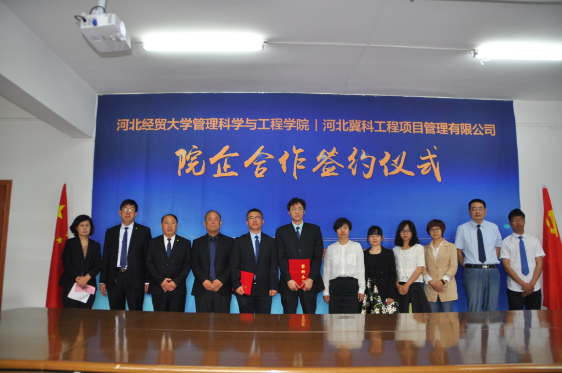 与河北冀科工程项目管理公司举行了院企合作签约仪式。学院院长武彦斌,副院长李伟红,工程管理系各专业教师以及企方公司总经理郭建明,副总经理谷耀杰、宋俊岭、候克芳,公司各部门经理出席了签约仪式。