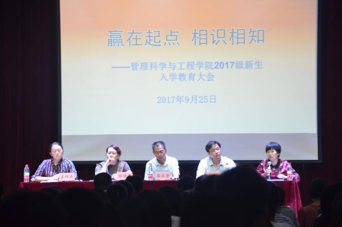9月25日,管理科学与工程学院在大学生活动中心3号厅召开2017级新生入学教育大会。学院党委书记高永芳、院长武彦斌、党委副书记张晓军、副院长李伟红及全体辅导员出席,学院2017级全体新生参加。会议由孟祥燕主持。