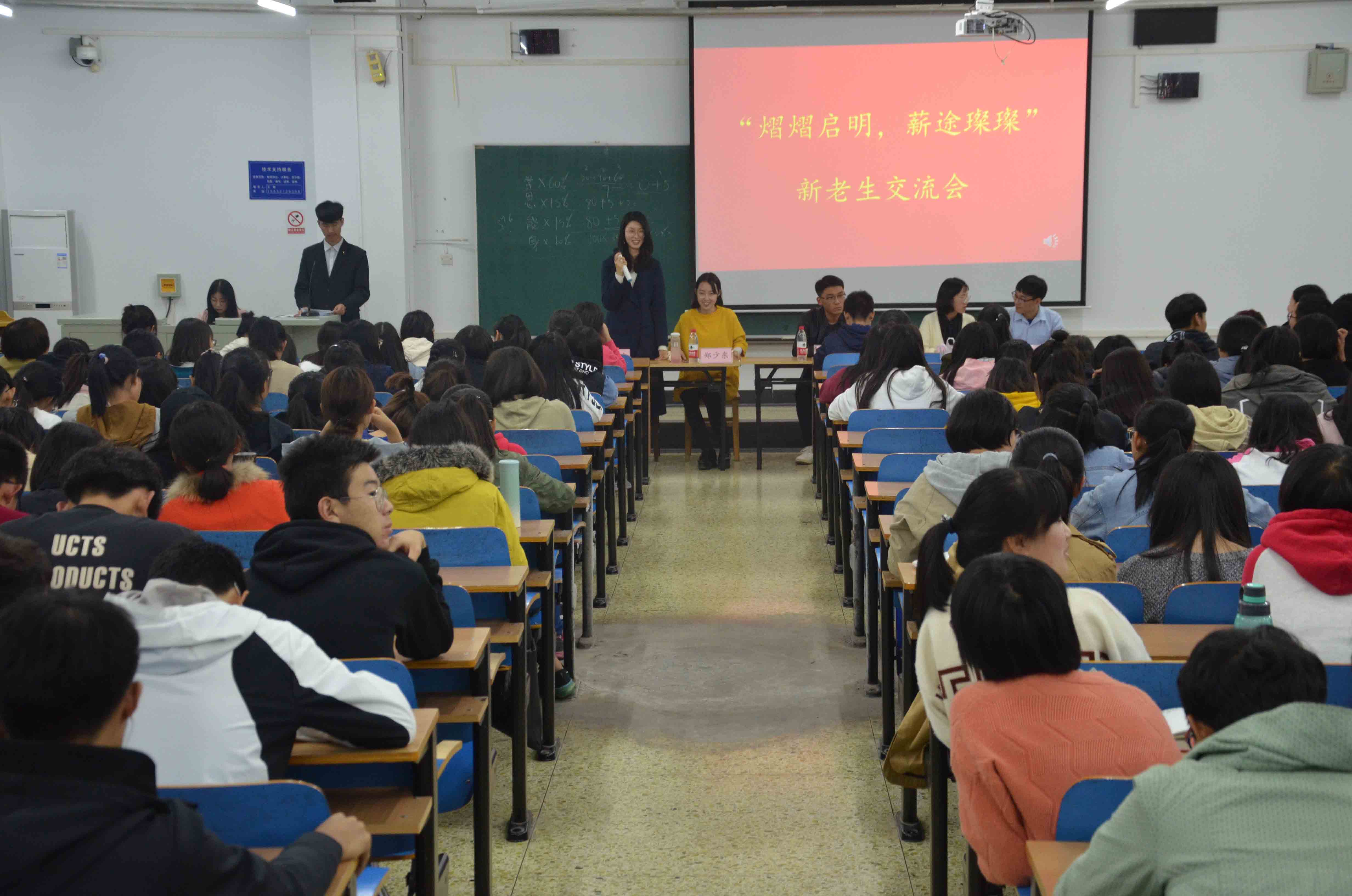 10月25日晚,管理科学与工程学院在第三教学楼C509教室召开了以“熠熠启明,薪途璨璨”为主题的新老生交流会,来自各专业的16级优秀学生代表杜鹏飞,赵梦凡,赵珺,郑少东和郭凤鸣出席本次交流会,18级全体新生到场参加。