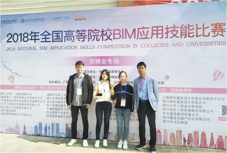 派出的代表队在比赛中荣获BIM5D施工项目成本管理专项一等奖、BIM招标项目管理一等奖以及团队全能三等奖。本届大赛由中国建设教育协会主办、四川大学锦城学院、广联达科技股份有限公司协办,其中本科组由来自全国190余所高校的361支队伍参赛。