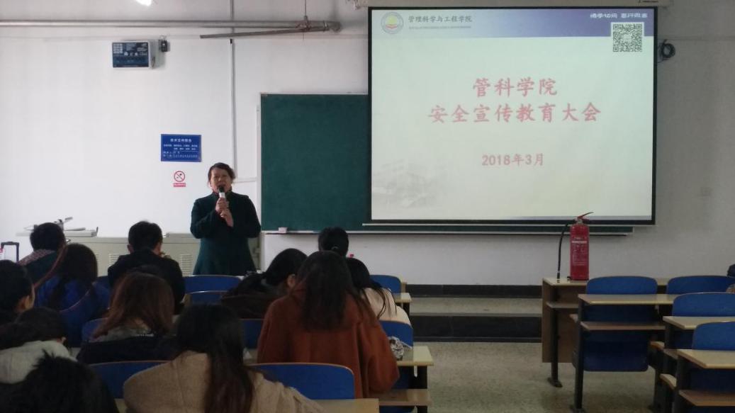 为做好2018年春季开学安全风险防范工作,3月12日,管理科学与工程学院在北三教A501召开春季安全宣传教育大会。大会特邀冀消防安防咨询中心李云峰教官做了消防讲解和培训,学院党委副书记张晓军出席并主持,学院200余名学生参加。