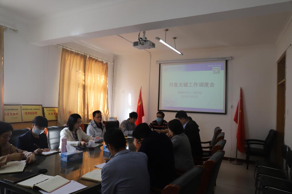 在三办134会议室召开月度关键工作调度会,学院党委书记高永芳、院长祁红梅、党委副书记田蓁子出席,各系主任及学院各职能部门负责人参加。会议由院长祁红梅主持。