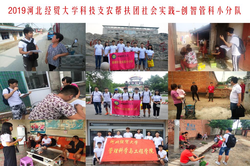 创智管科小分队由3名教师和7名学生组成,在社会实践期间连续走访廊坊市的多个村庄,通过现场咨询和问卷调查的形式采访100多位村民。创智管科小分队还依据专业特长组建三个小组,分别以绿色建筑、智慧物流和乡镇信息化与互联网+等方面开展实地调研。
