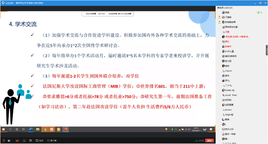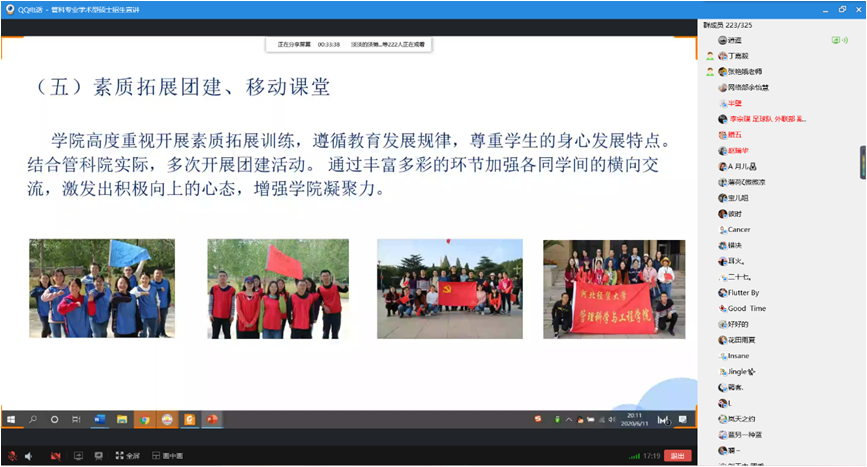 在线上举办2021年管理科学与工程专业学术型硕士招生宣讲会,硕士生导师王芹鹏副教授、宋鸿芳副教授以及研究生辅导员张艳娥老师出席本次会议。