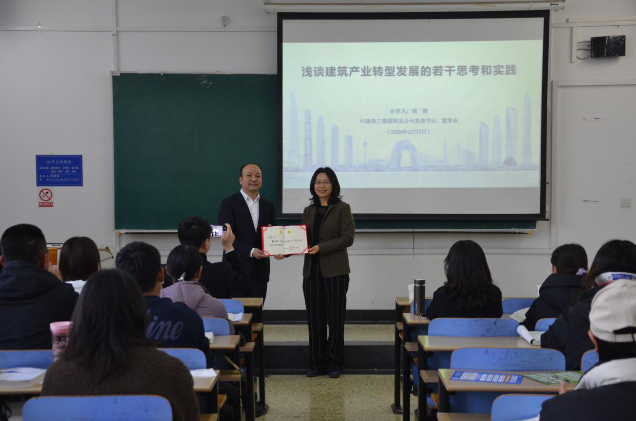 邀请中建科工集团河北公司党委书记、董事长钱焕在第三教学楼B203教室作题为“浅谈建筑产业转型发展的若干思考”的学术讲座。此次讲座由院长祁红梅主持,工程管理系教师以及工程管理系部分本科生参加。