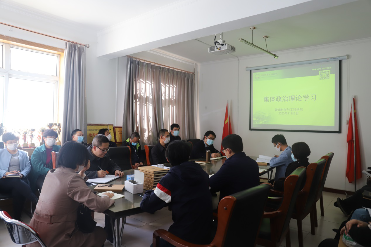 11月2日下午,管理科学与工程学院在第三办公楼134会议室开展教职工集体政治理论学习,学习会由学院党委书记高永芳主持,全体教职工参加。
