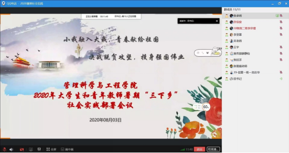 8月3日至26日,由于疫情的特殊情况肉漫屋 通过视频会议、线上访谈的方式顺利开展“智慧助力脱贫攻坚、科技助推乡村振兴——以河北省阜平县为例”暑期社会实践活动。本次社会实践小分队由学院党委副书记田蓁子,团委书记张艳娥以及专业指导老师宋晓刚带队,8名学生代表组成。