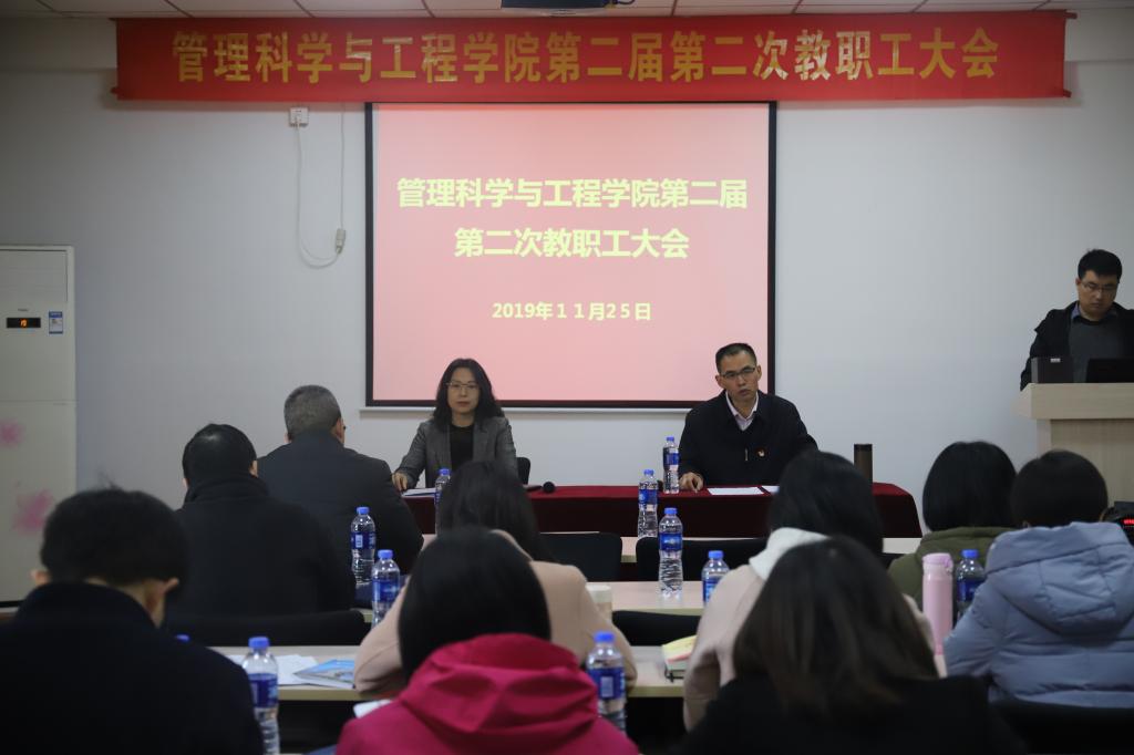 第二届第二次教职工大会在一教408室召开。学院党委书记高永芳、院长祁红梅出席,全体教职工参加。会议由学院工会主席宋智广主持。