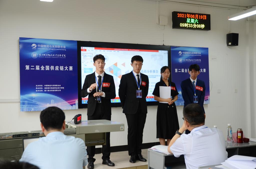 6月18日至19日,第二届全国供应链大赛决赛在长沙举行。由2019级物流管理和2020级智慧物流实验班学生组成的两支队伍入围决赛,在张旭、郭义荣、马翊华、田蓁子老师指导下,经过现场演示和答辩,由刘潇达、王禹超、邢青山、张梓琪、曲汉铭、李腾云、张宝颐、张旭萍组成的两支队伍均获二等奖。