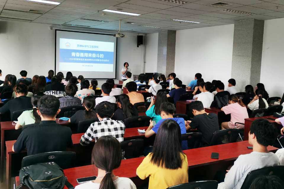 6月11日下午,2020级智慧物流实验班在图书馆文检课教室召开了以“青春是用来奋斗的”为主题的期末总结暨期末考试动员大会。班会由管理科学与工程学院党委副书记、2020级智慧物流实验班辅导员田蓁子主持,2020级智慧物流实验班全体同学参加。