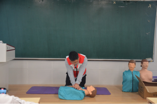 此次培训分为救护理论和实操培训两部分,在救护理论部分,各位老师主要介绍了各种突发灾难以及灾难来临时的各种应急救护措施,系统地介绍了心脏骤停和心肺复苏等方面的知识,详细介绍了心肺复苏操作流程并,为在场学生进行了演示。在实操培训中各位老师耐心讲解了胸外心脏按压、人工呼吸、绷带包装、三角巾包扎等动作要领,纠正了学生们在练习中的错误,并对参训学生逐一进行了考核。