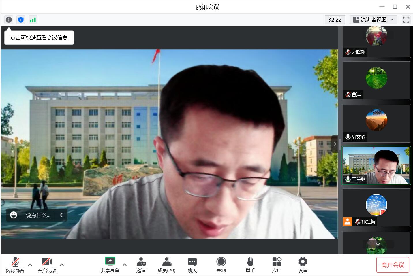 在腾讯会议线上召开研究生导师培训会。学院副院长王芹鹏、全体研究生导师、研究生辅导员20余人参加会议,会议由院长祁红梅主持。