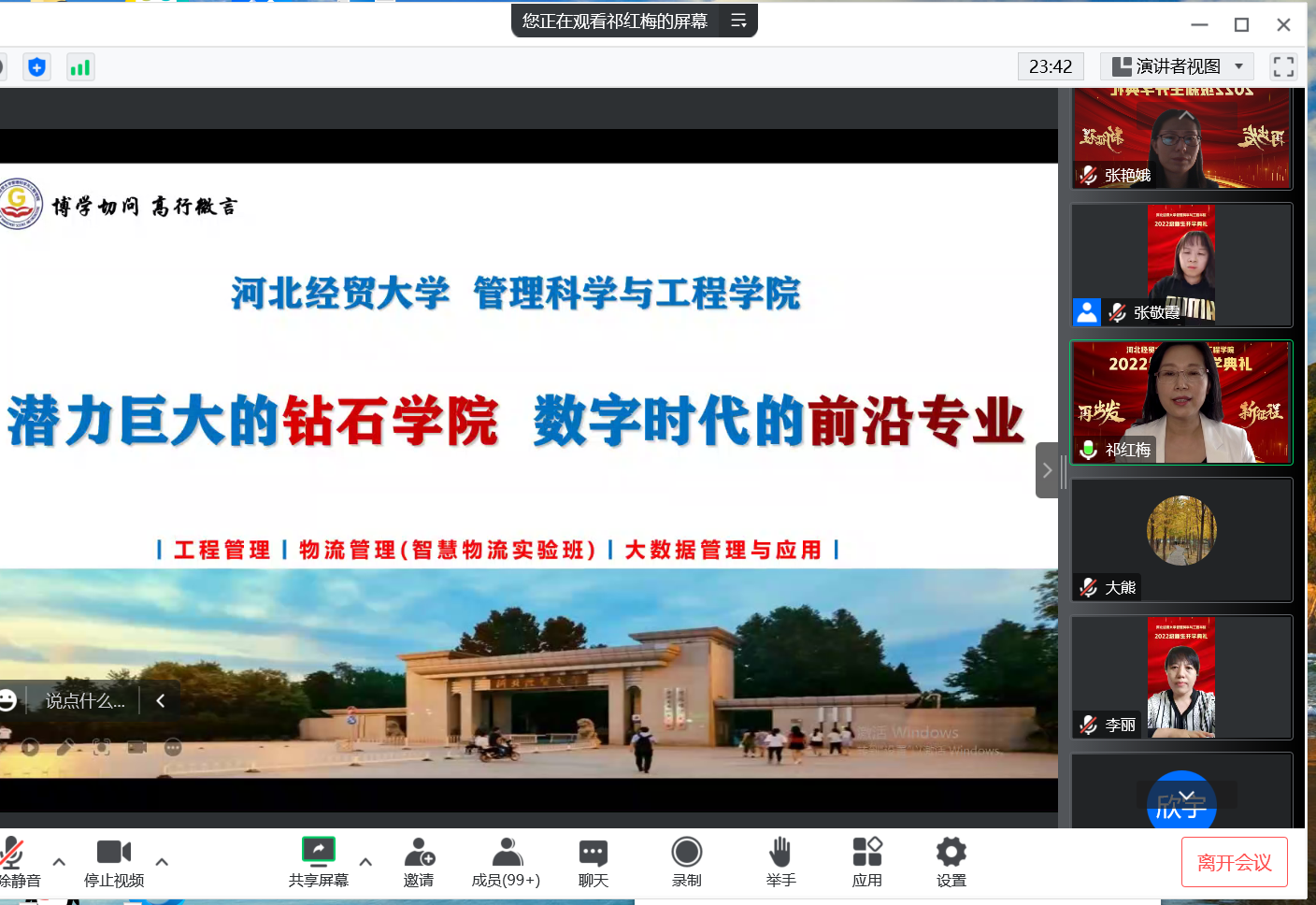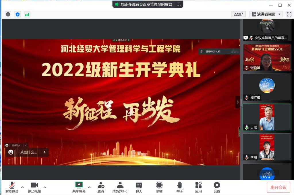 2022级新生开学典礼暨新生入学教育大会在线上举行,学院党委书记白玉祥,院长祁红梅,副院长王芹鹏出席,学院全体教职工、2022级全体新生参加,典礼由党委副书记李丽主持。