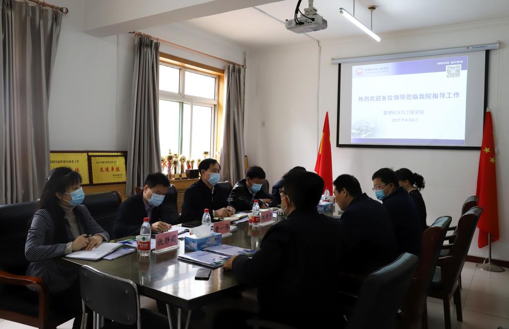 4月6日上午,校党委副书记刘建平带队到管理科学与工程学院就辅导员队伍建设、职业愿景引领行动及就业工作进行专项调研督导,学生工作部、就业指导服务中心相关人员陪同。
