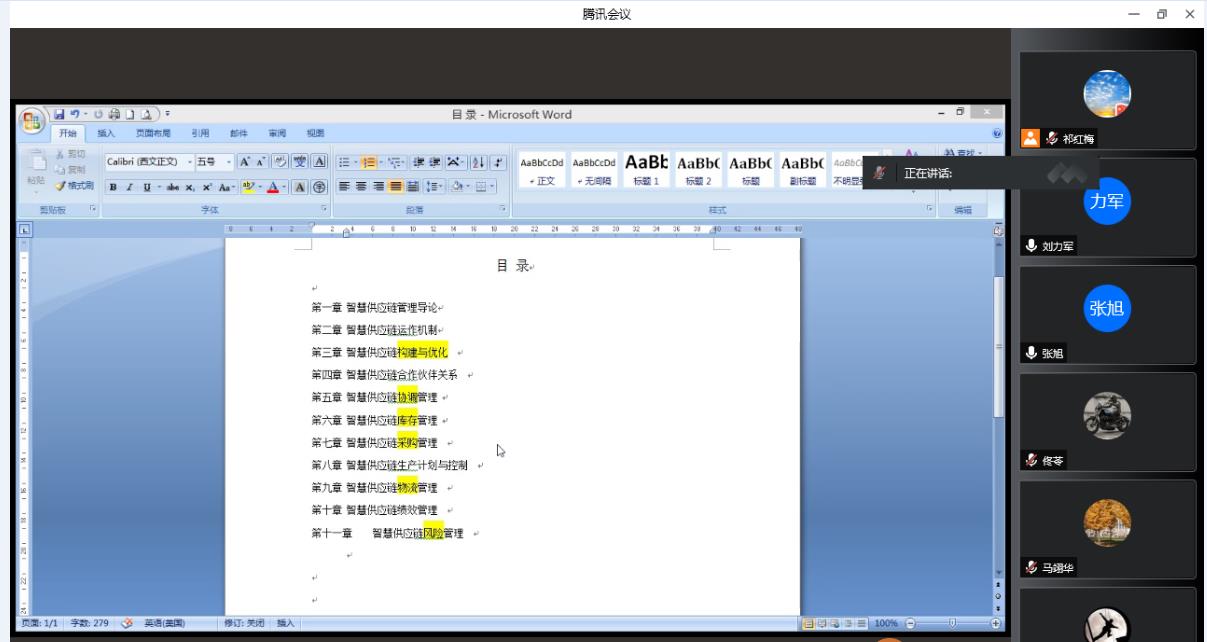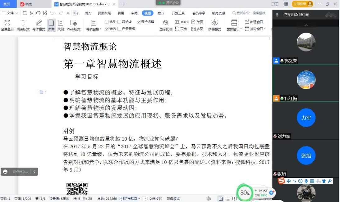 在腾讯会议线上召开新财经教材编写工作推进会。学院院长祁红梅以及物流系全体教师参加会议,会议由副院长王芹鹏主持。首先祁红梅院长发言,要求各位负责人重视教材编写工作,要在新财经建设上出成果,提前为后期国家一流专业建设评估做好谋划。然后由物流系主任郭义荣对智慧物流概论教材编写情况作了汇报,接着由刘力军老师、周长荣老师分别对物流系统建模与仿真和智慧供应链管理汇报教材编写情况,并提出在编写过程中遇到的问题,与参会老师讨论了如何解决智慧元素融入物流教材、物流系统建模图片编辑等问题。通过这次会议有助于推进新财经教材建设以及国家一流专业建设的快速发展。