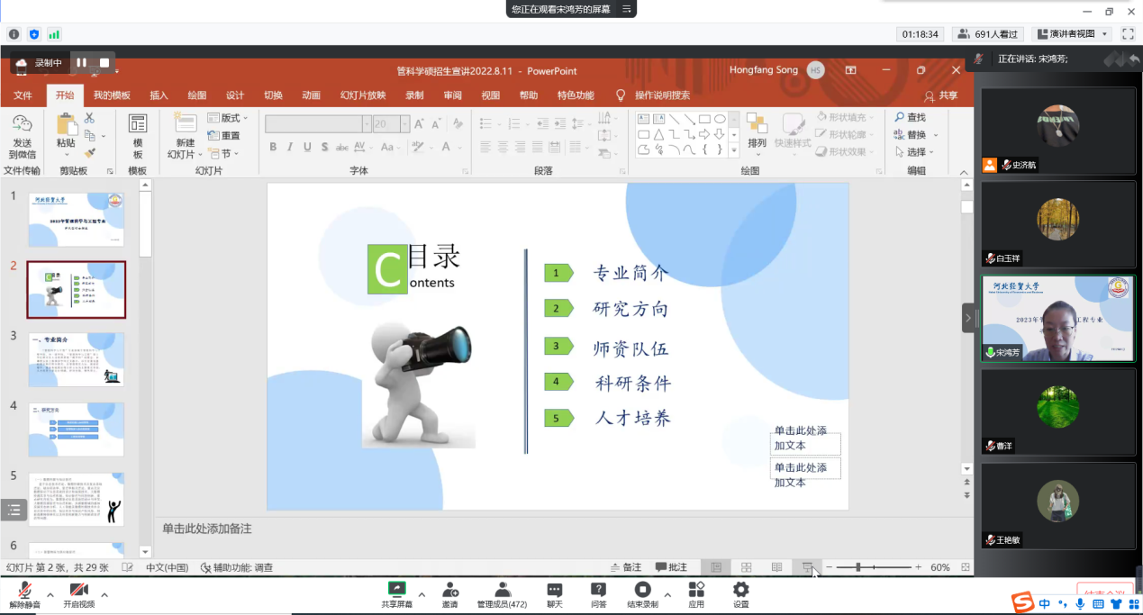 宋鸿芳对学院管理科学与工程专业的研究方向、师资队伍、科研条件和人才培养方案进行解读。结合近几年的考研形势,为同学们分析了报考肉漫屋