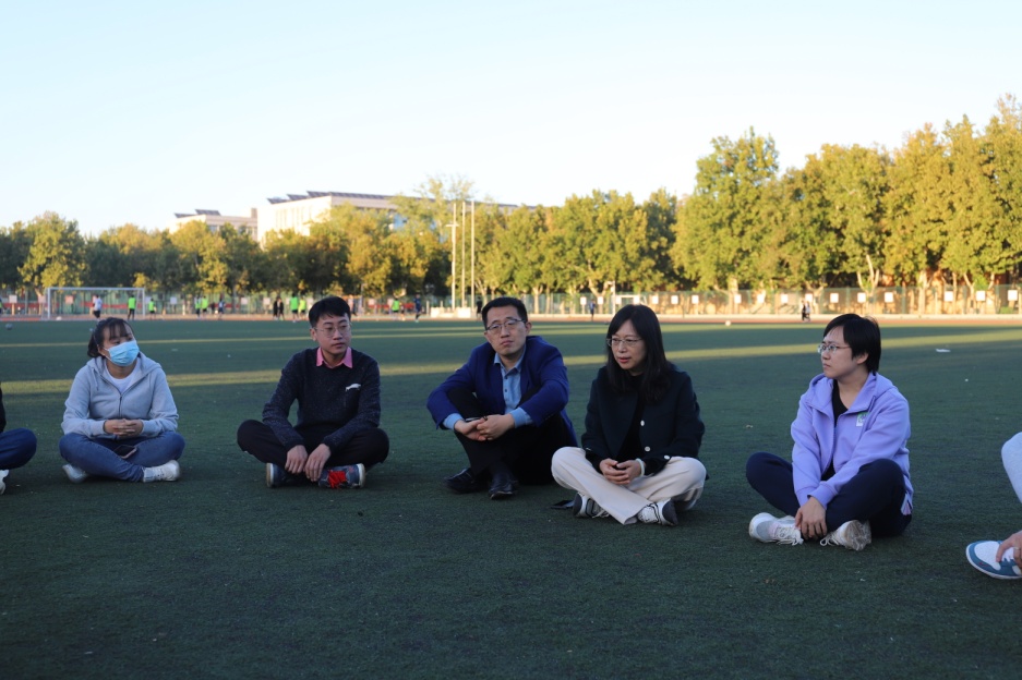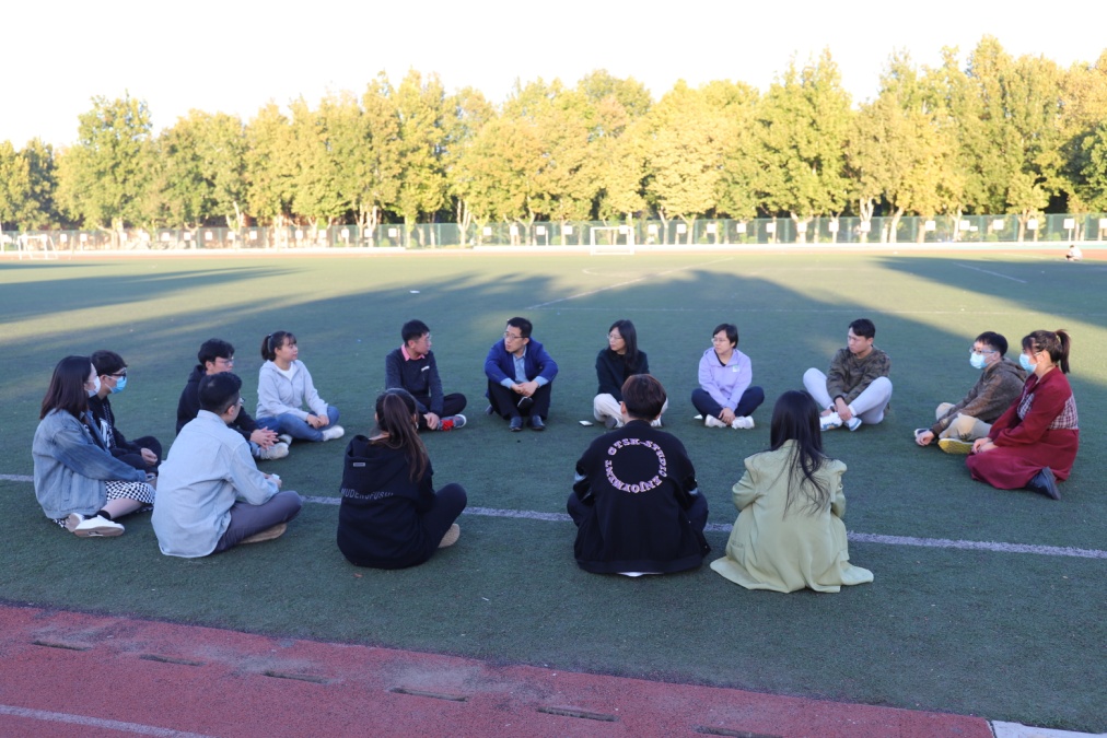 10月10日,学院召开研究生干部操场草坪座谈会,院研究生会和各班级研究生学生干部讲述了疫情期间和开学以来班级开展的学习及工作情况,以及作为研究生学生干部工作的成长经历和成长感悟。祁红梅在操场草坪座谈中与在座的每一位研究生干部进行交谈,期望同学们积极配合学校的疫情防控措施,克服多重困难,坚守学习成才初心理想,朝着德智体美劳全面发展的复合型人才方向不断努力奋斗。王芹鹏鼓励同学们多和老师沟通交流,充分利用学校丰富的学习资源和疫情封闭管理的有利学习时机,高效汲取知识,拓展专业视野,丰富校园生活。曹洋要求研究生干部将责任、担当、态度贯穿到工作中,讲政治、干实事,要加强学习,起好带头作用,切实为同学服好务。