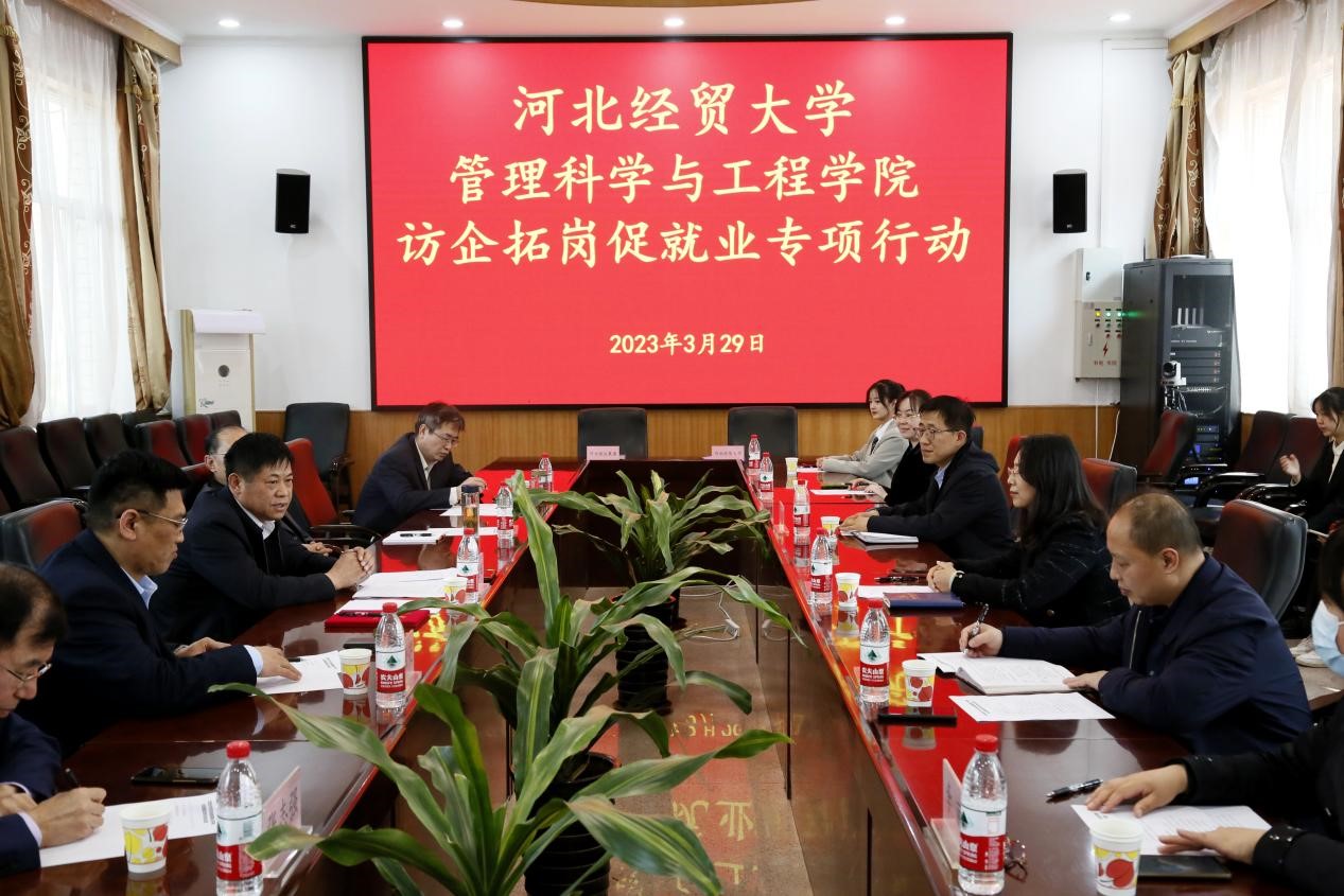 领导班子、师生代表与河北快运集团有限公司在第二会议室开展访企拓岗促就业专项行动。河北省道路运输事业发展中心副主任孙虎、河北快运集团有限公司总经理戴金亮及公司领导高层开展座谈交流。