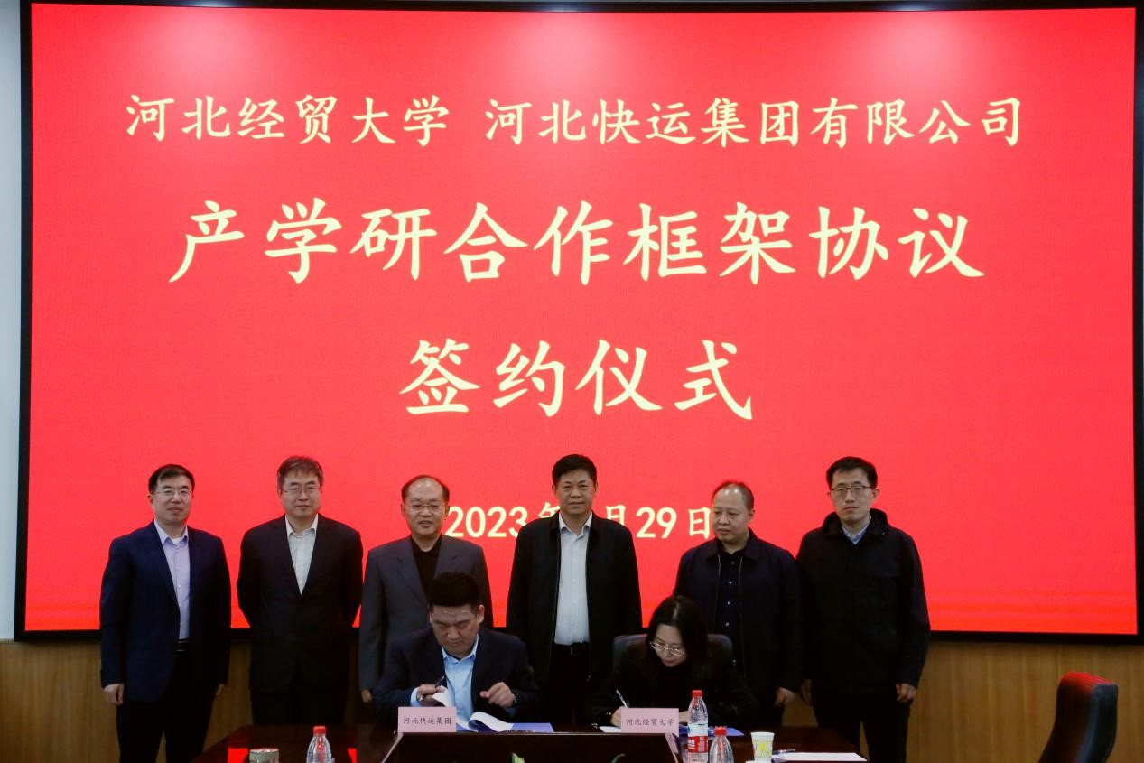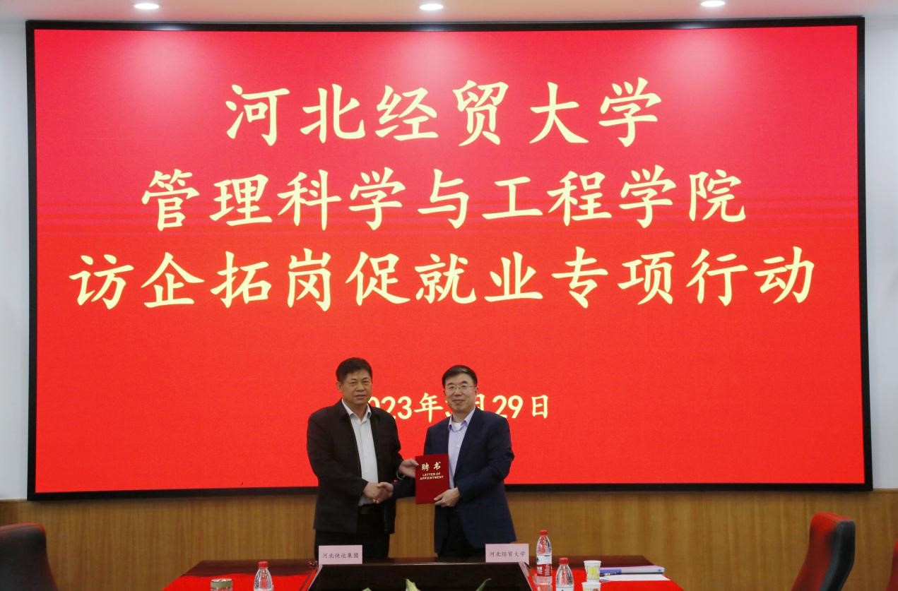 祁红梅、戴金亮代表双方签署了《校企战略合作协议书》。校党委常委、副校长杨金田为河北快运集团有限公司运营总监张志强颁发社会硕导证书。