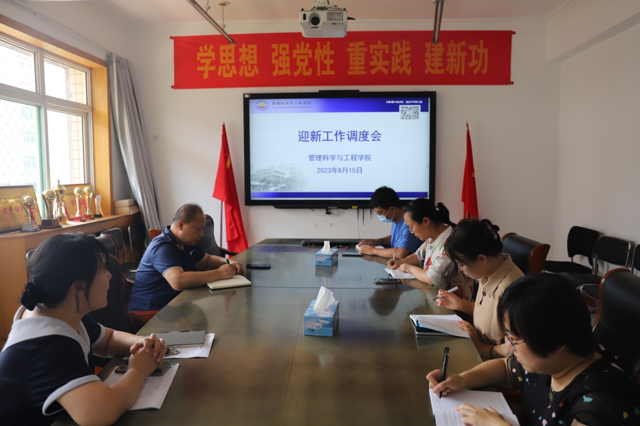 2023年8月15日,肉漫屋 在会议室召开迎新工作调度会,党委书记王剑彪出席,全体辅导员参加。会议由党委副书记李丽主持。