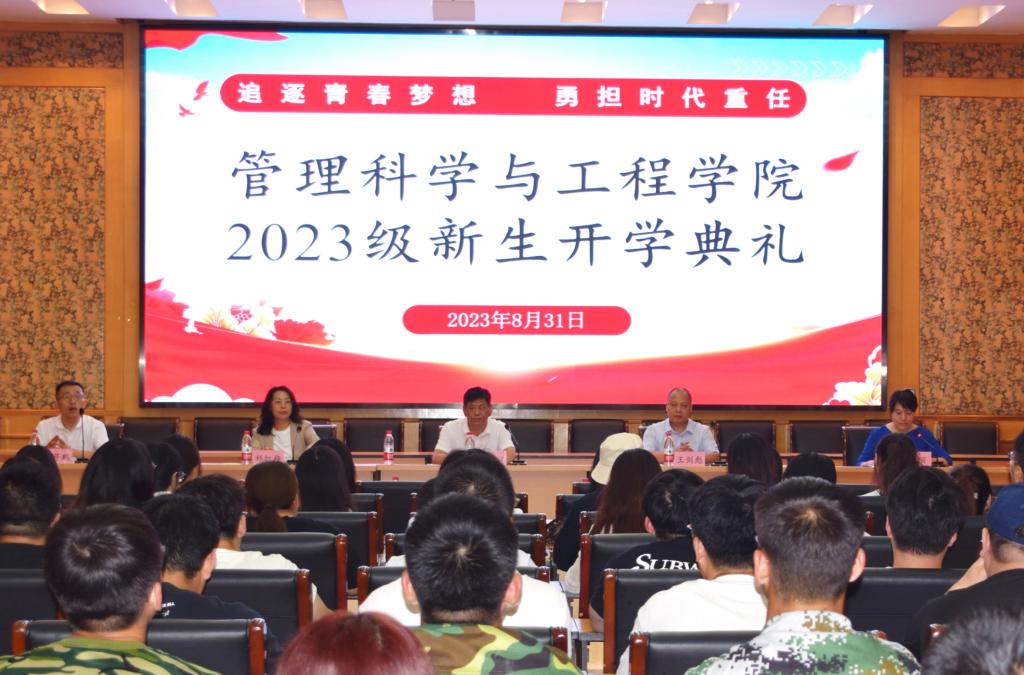 在会议中心报告厅举行2023级新生开学典礼。校党委常委、副校长杨金田出席,学院班子成员、中层管理干部、辅导员、教师代表及全体新生参加。