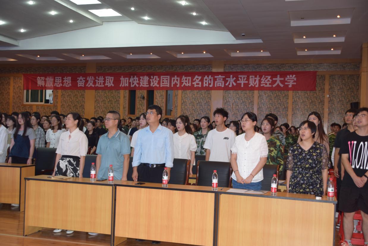 伴随着全体师生齐唱激昂雄壮的国歌,开学典礼正式开始。典礼伊始,杨金田校长向全体新生表示热烈祝贺,并对2023级新生提出三点希望:一是爱己,在大学四年的生活中,抓住机遇提升自身素质;二是爱校,以主人翁的意识投入到学校的发展建设中;三是爱国,胸怀大志、有所作为,为祖国建设贡献力量。