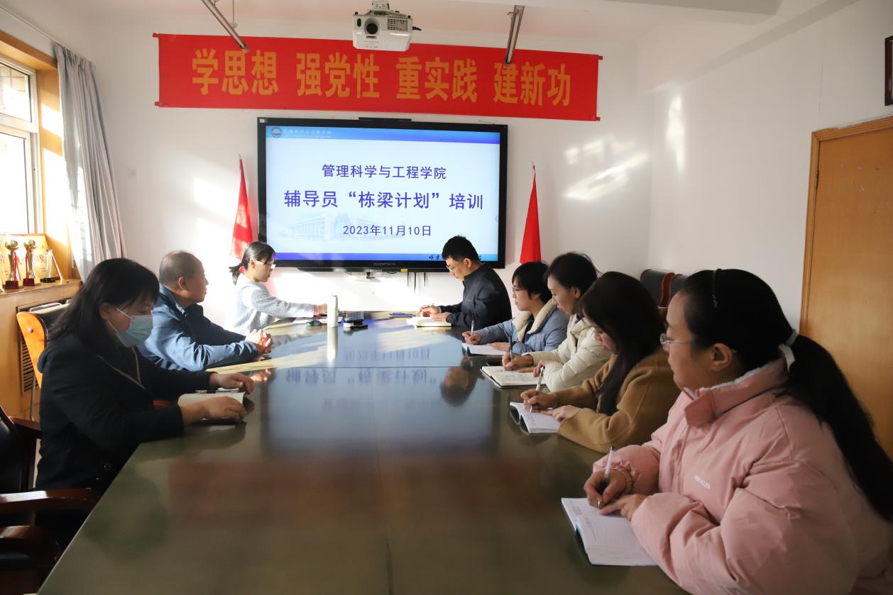 在二楼中厅会议室开展辅导员“栋梁计划”系列培训第七讲,此次培训由财政税务学院黄培老师和管理科学与工程学院宋智广老师主讲,学院党委书记王剑彪、党委副书记李丽及全体辅导员参加。