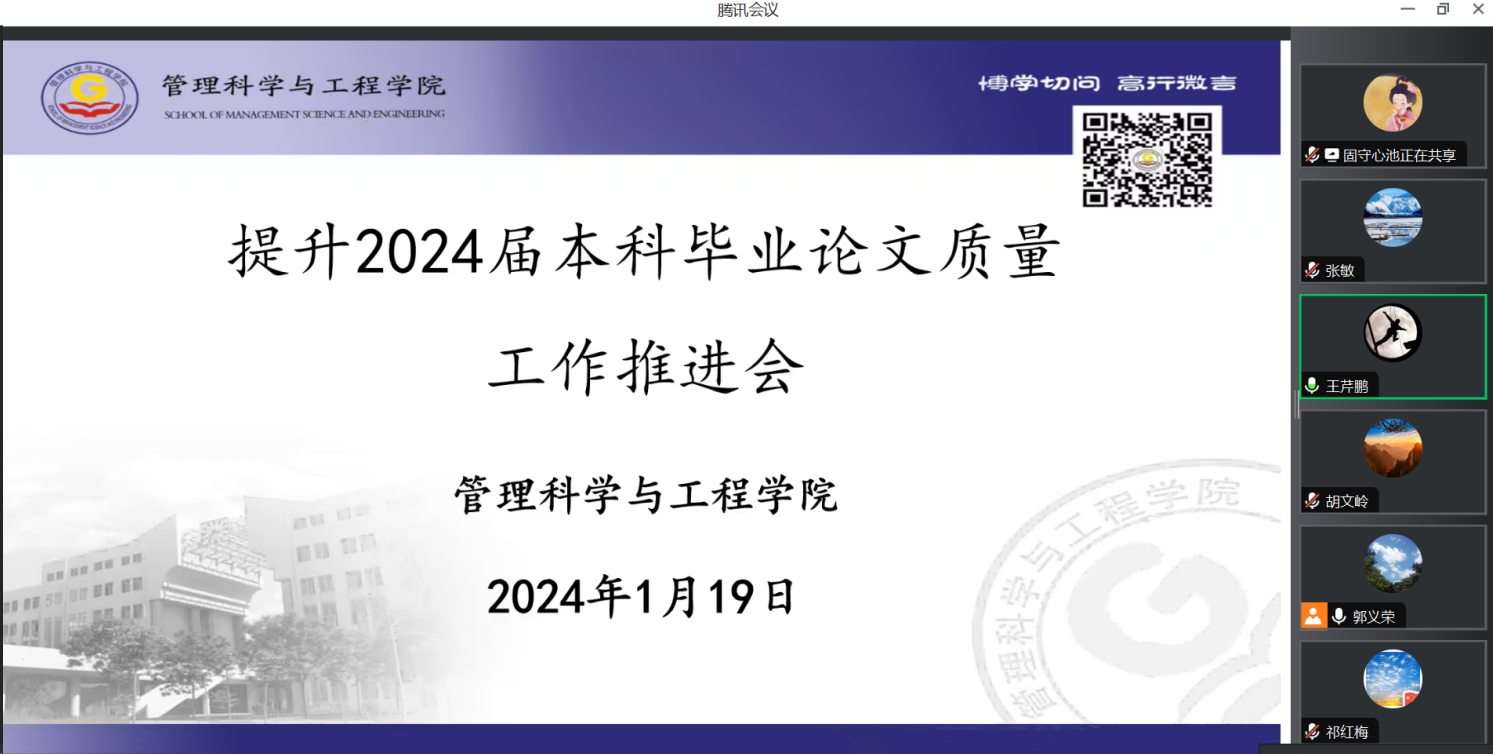 在线上召开“2024届本科毕业论文质量提升工作推进会”。会议由副院长王芹鹏主持,院长祁红梅、各系主任及教学秘书参会。