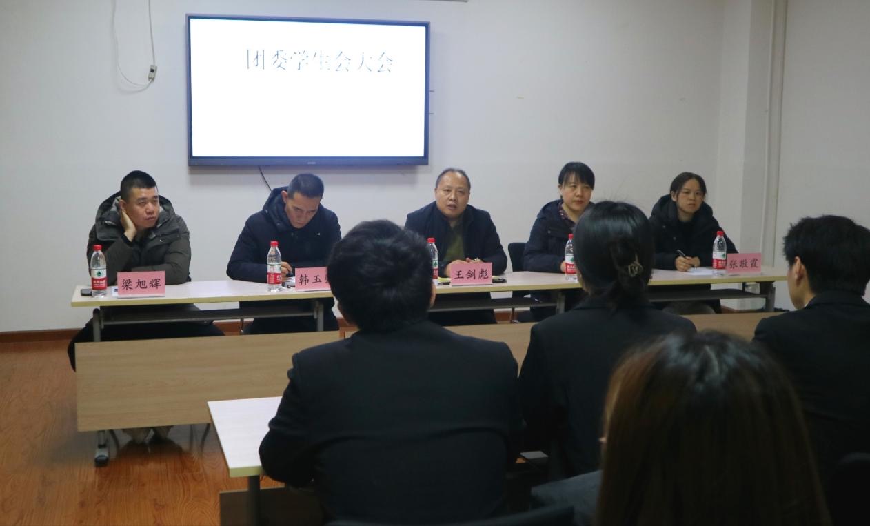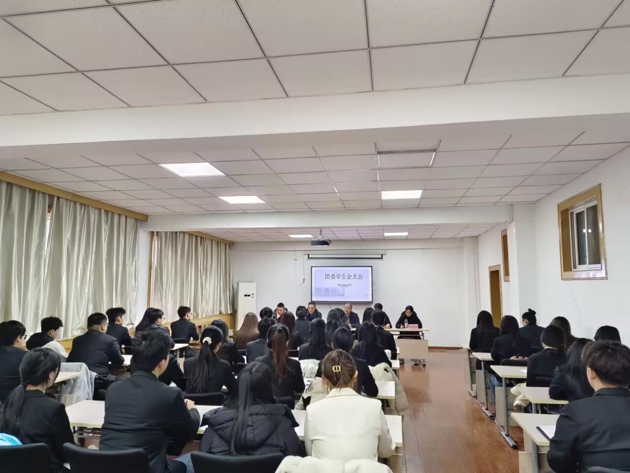 于一教408召开院团委学生会大会。学院党委书记王剑彪、党委副书记韩玉强、团委书记梁旭辉、辅导员张敬霞出席会议,院团委学生会各部门主要负责人参加。会议由学院党委副书记李丽主持。