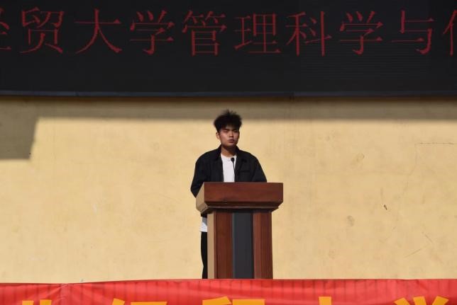 学生代表方队入场后,运动会开幕式正式开始。在致辞中,王剑彪对本次运动会的召开表示热烈祝贺,向辛勤筹备本次运动会的全体人员表示衷心感谢。他强调,运动会是一场体育竞技的盛会,倡导公平竞争、拼搏争先,尽情展现青春的活力与风采,同时希望全院师生以本次运动会为契机,传承团结、合作、友爱的精神,彰显坚强、自信、奋进的力量,凝聚管信人荣院爱院的自豪感。韩玉强鼓励同学们在比赛过程中秉持“友谊第一,比赛第二”的原则,发扬公平竞争、诚信参赛的精神,赛出成绩,赛出水平,为今后的学习和生活奠定坚实的基础。