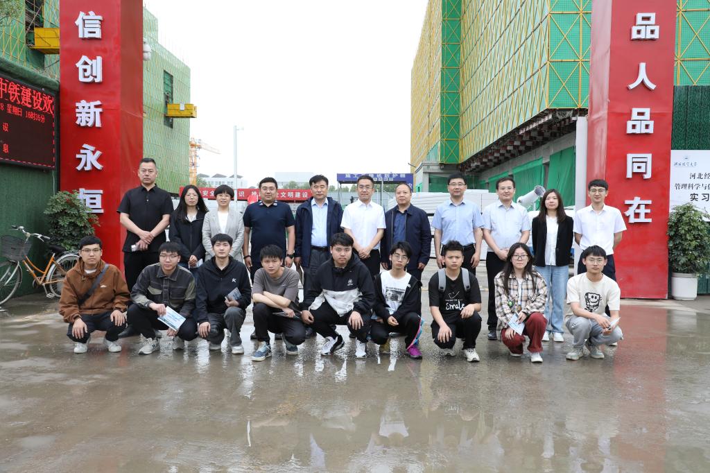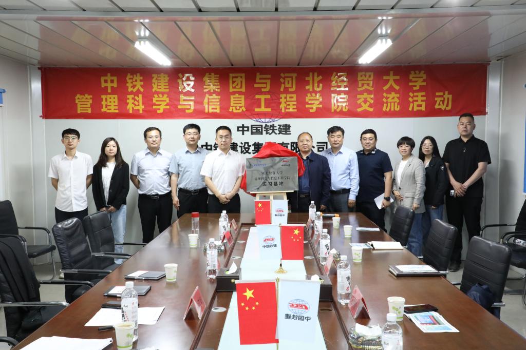 党委书记王剑彪、院长孙立辉与中铁建设集团华北公司副总经理张江华、河北经贸公寓项目经理裴少章为实习基地揭牌。
