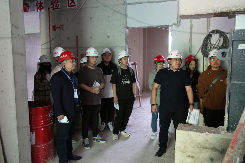 座谈会前,校园规划与建设处李彦奇老师在施工现场对学生公寓项目工程概况、施工做法、安全文明施工等情况进行了详细介绍。学院领导和师生代表对施工现场、工序样板、安全体验区等进行了观摩体验。