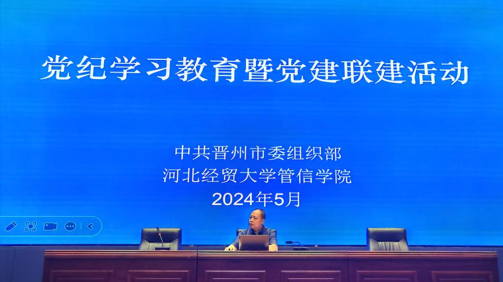 2024年5月24日上午,学院与晋州市委组织部在晋州市委党校开展党纪学习教育暨党建联建活动。学院党委书记王剑彪出席活动并做专题报告。晋州市下辖各村党支部书记、发展对象及学院各支部书记和学生党员代表共400余人参加活动。