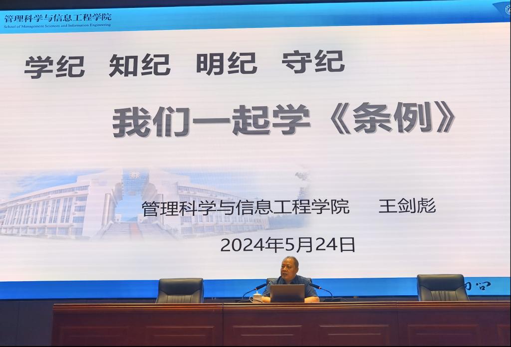王剑彪做《我们一起学例》专题报告,从党的建设历程、《条例》修订的重点内容解读、以案说纪、做学纪知纪明纪守纪模范等四个方面,对《条例》做了深入浅出的解读和辅导。学院“双带头人”工作室党支部书记刘院英交流分享了基层党组织建设经验。
