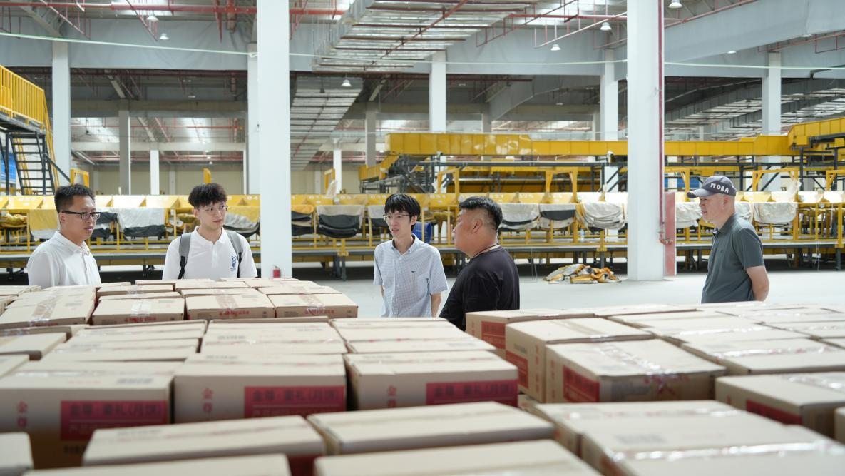 教研团首先参观了河北韵达(晋州)智慧仓的自动化分拣系统、智能仓储管理系统及绿色包装应用等核心区域,详细了解了该智慧仓在提升物流效率、降低运营成本、优化客户服务等方面的创新实践。随后,校企合作教研团正式进驻企业,开始“问诊”项目的方案落地实施,学院2023级MEM两位全日制研究生王乐、李言东在企业导师王思男的带领下,开展智慧仓数字化转型方案实施前的数据清洗和仿真验算优化。郭义荣对韵达在智慧物流领域的积极探索和显著成效给予了高度评价。他指出,当前物流行业正处于转型升级的关键期,韵达河北运营中心加快数字化、智能化转型,是培育物流行业新质生产力的积极探索。