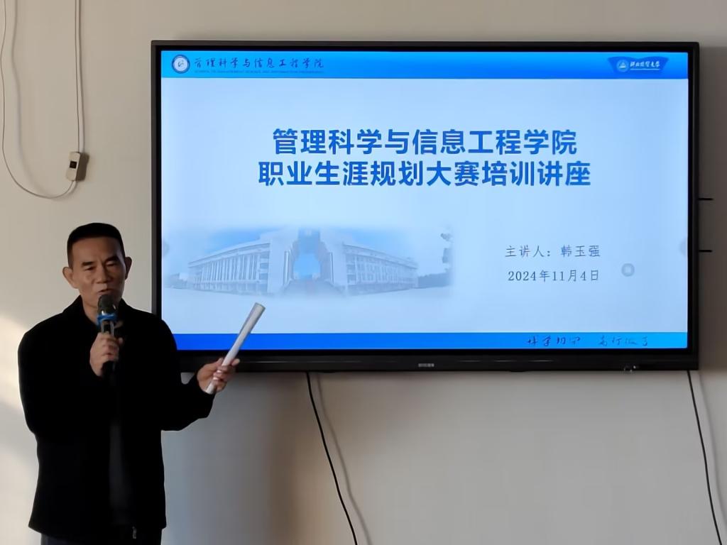 于11月4日下午在一教408举办了职业生涯规划大赛赛前指导培训。本次培训由学院副处级辅导员韩玉强主讲,全体辅导员及参赛同学参会。