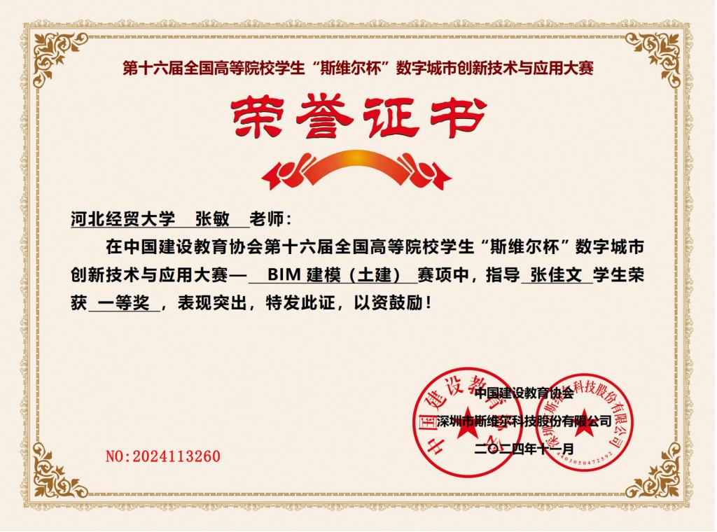近日,第十六届全国高等院校学生“斯维尔杯”数字城市创新技术与应用大赛个人赛获奖名单公示,工程管理系张敏、曹聪慧老师指导学生参加了BIM建模赛项比赛,获全国一等奖1项、二等奖1项、三等奖2项。