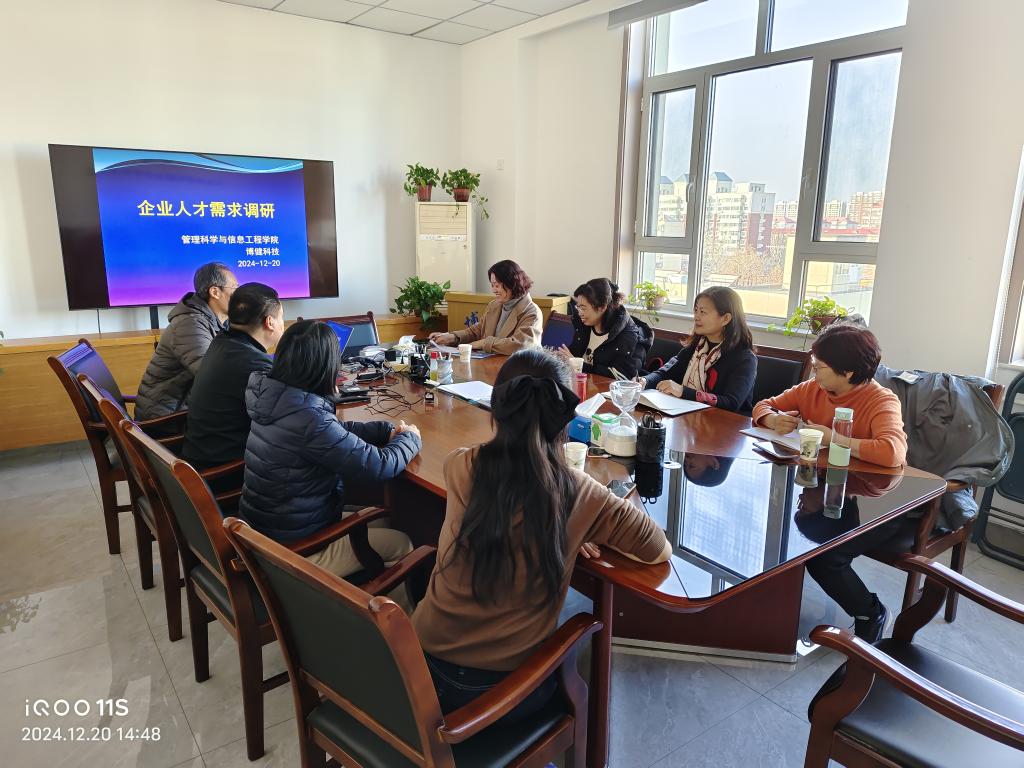 计算机通识课教学团队在徐国章和张静妙两位教研室主任带领下,前往河北博健科技有限公司开展人才需求调研,公司副总经理贾铁拴及产品主管张文华等热情接待,会议于公司会议室举行,由贾总主持,部分骨干教师参会。