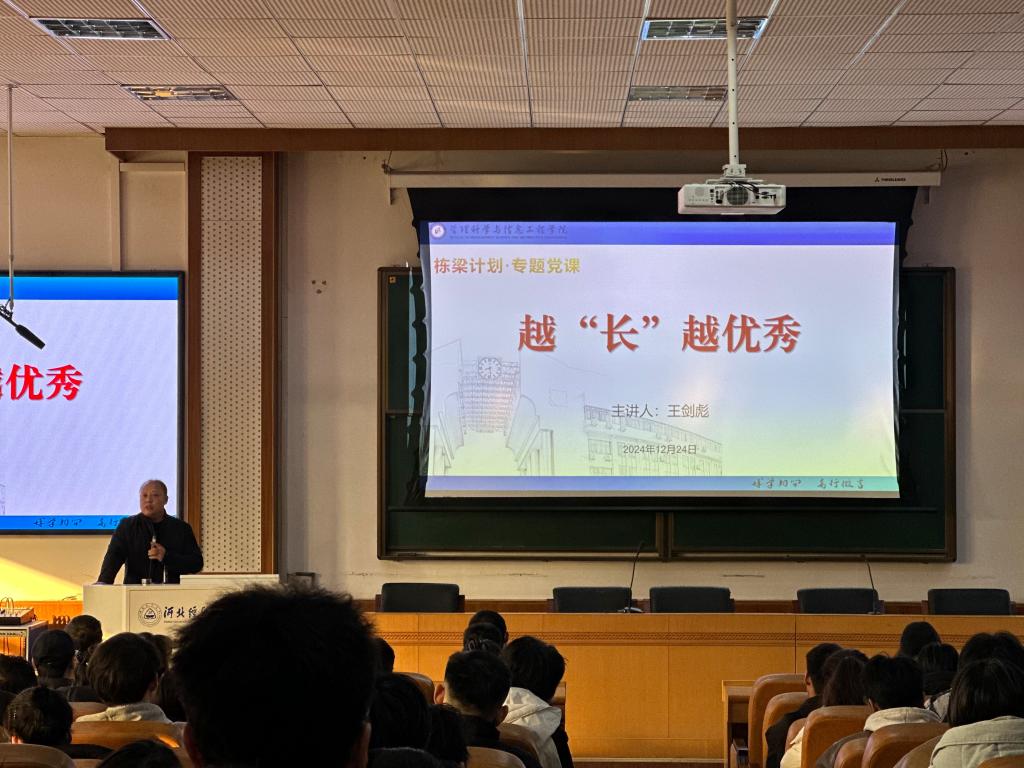学院党委书记王剑彪做《越“长”越优秀》专题培训,从“我是谁”“为什么是我”“我该怎么做”三个方面阐释了学生干部的角色定位和担当作为,并结合具体工作,要求学生骨干在工作学习生活中经常从这三个方面常思、常想、常行,明确角色定位、强化责任担当、增强服务意识、发挥带头作用,越成长越优秀。