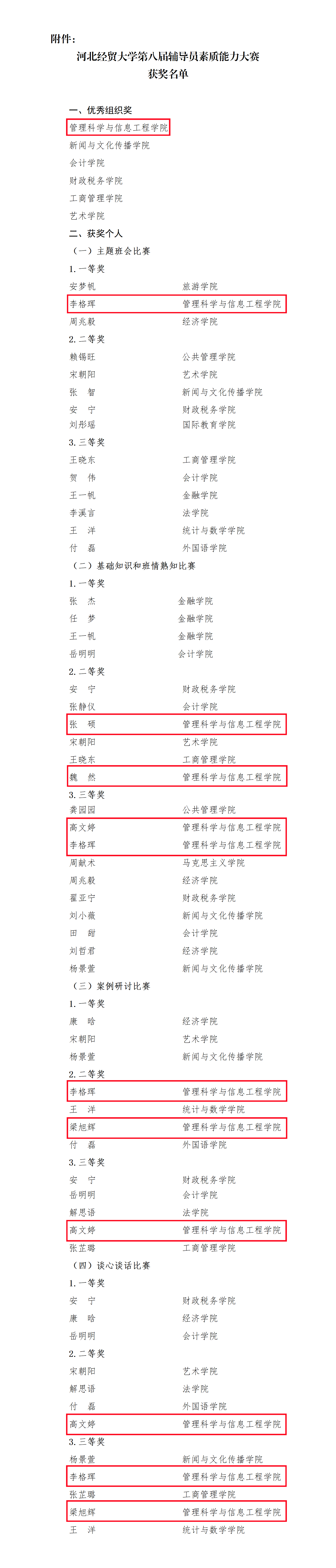 学院获优秀组织奖,高文婷、梁旭辉、李格珲、张硕、魏然获个人奖。