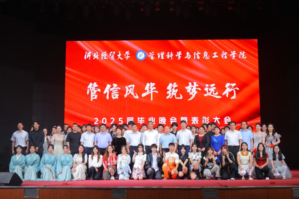 在校礼堂成功举办“管信风华·筑梦远行”2025届毕业晚会暨表彰大会,欢送毕业生,表彰先进典型,展现师生风采,凝聚奋进力量。校党委副书记张秀山,联系班级导师:学校办公室主任吕建春、宣传部部长刘会娟、统战部部长李军、宣传部副部长戎来出席并颁奖,学院领导班子及全体辅导员与500多名毕业生代表齐聚一堂,共同见证了这一充满温情与荣光的时刻。
