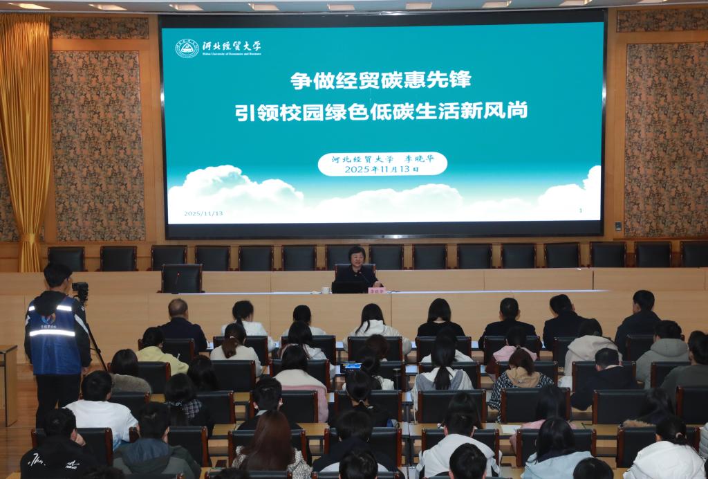 11月13日下午,校党委书记李晓华以“争做经贸碳惠先锋,引领校园绿色低碳生活新风尚”为主题,为*肉漫屋