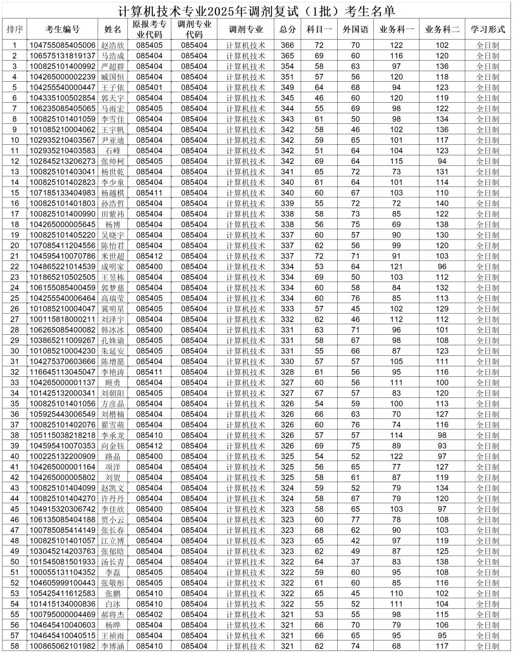 计算机科学与技术专业2025年调剂复试(1批)考生名单