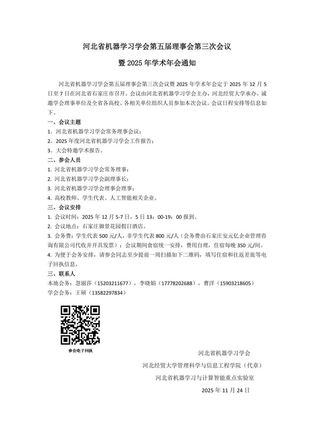 河北省机器学习学会第五届理事会第三次会议暨2025年学术年会通知