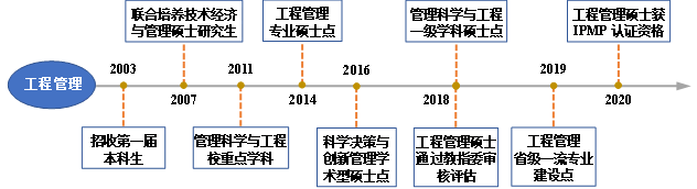 工程管理专业2003年开始招收第一届本科生,2014年获工程管理硕士专业学位授权,2018年获管理科学与工程硕士学位授权,并通过工程管理硕士专业审核评估,2019年被评为河北省一流专业建设点,2020年成为“工程管理硕士专业学位与IPMP认证合作培养单位”,2023年通过河北省一流专业验收。