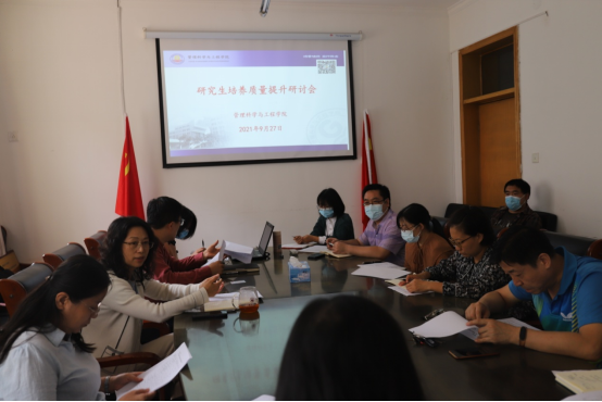 在学院会议室召开研究生培养质量提升研讨会。学院副院长王芹鹏、各学科主要负责人、全体研究生导师、研究生辅导员参加会议,会议由院长祁红梅主持。
