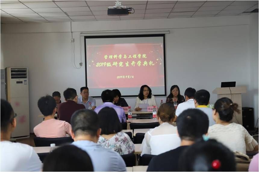 9月1日上午,管理科学与工程学院在一教408举行2019级研究生开学典礼。学院院长祁红梅出席,研究生导师、研究生管理人员以及2019级全体研究生新生参加。典礼由学院副院长李伟红主持。