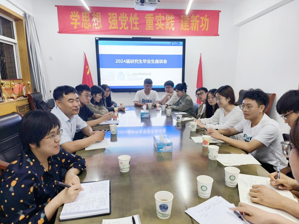 院长孙立辉、研究生辅导员曹洋与毕业生、在校生代表座谈。师生就优化研究生培养、管理过程充分讨论。孙立辉希望毕业生们坚定理想信念,勇担时代重任,奔向属于自己的锦绣前程。同学们表达了对学院的深厚情感和对学院发展的美好期待。
